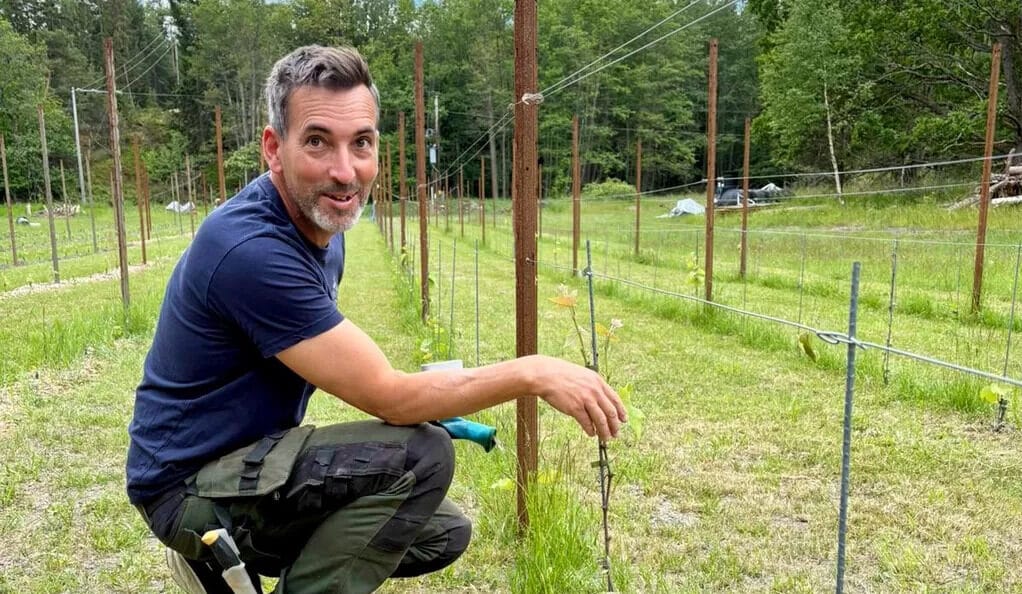 När Micke köpte sin fastighet på Ingmarsö för 25 år sedan föddes idén om att odla vindruvor. Men livet kom emellan och det dröjde till 2024 innan de första plantorna sattes i jorden på grannön Söderön.