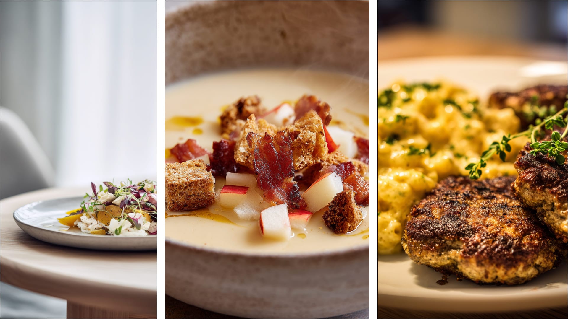 • Servera soppan med bacon- och äppeltoppingen samt rågbrödskrutonger.