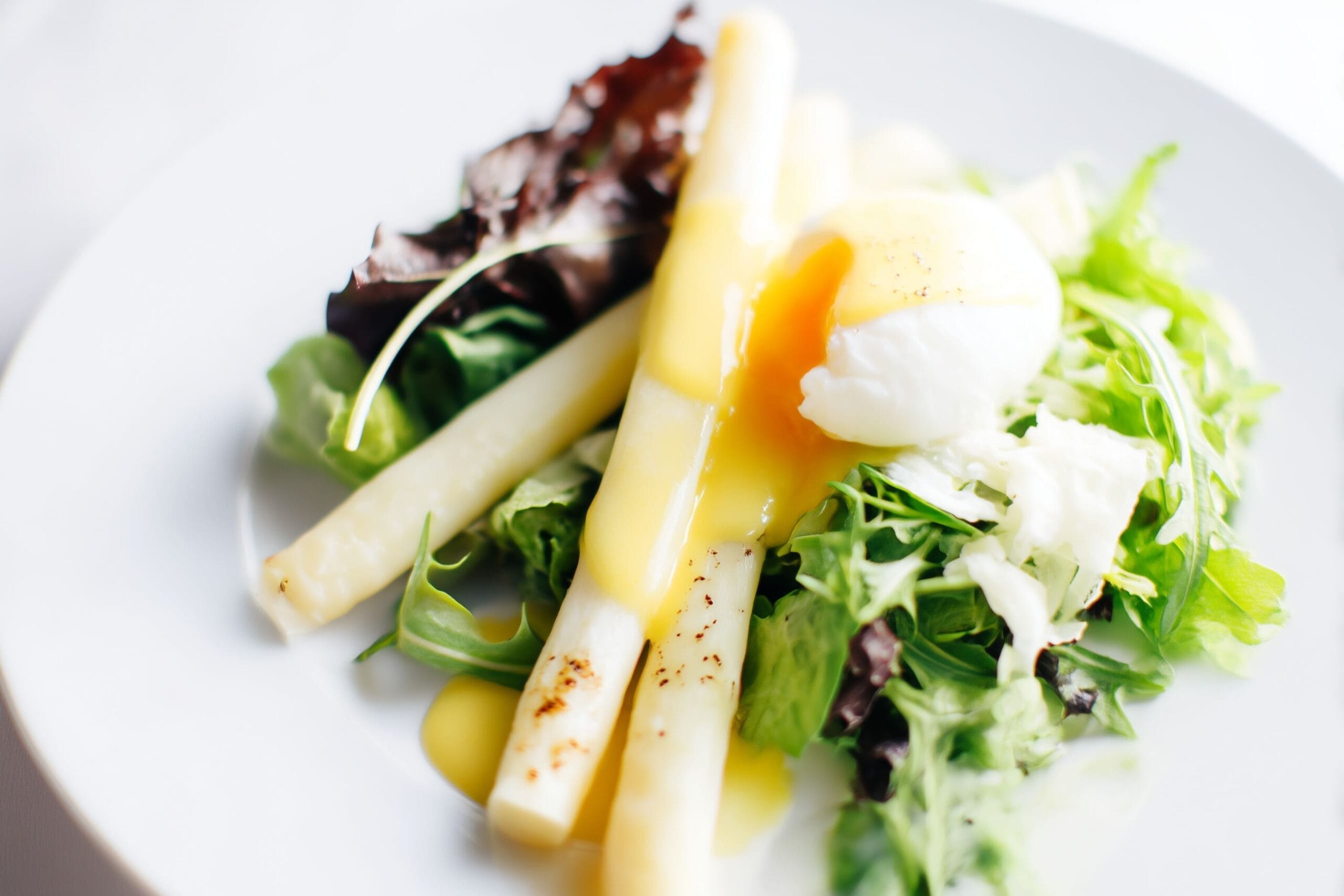 Lyx i enkelhet: Det pocherade ägget ger en silkeslen textur som gifter sig perfekt med sparrisen och såsen.